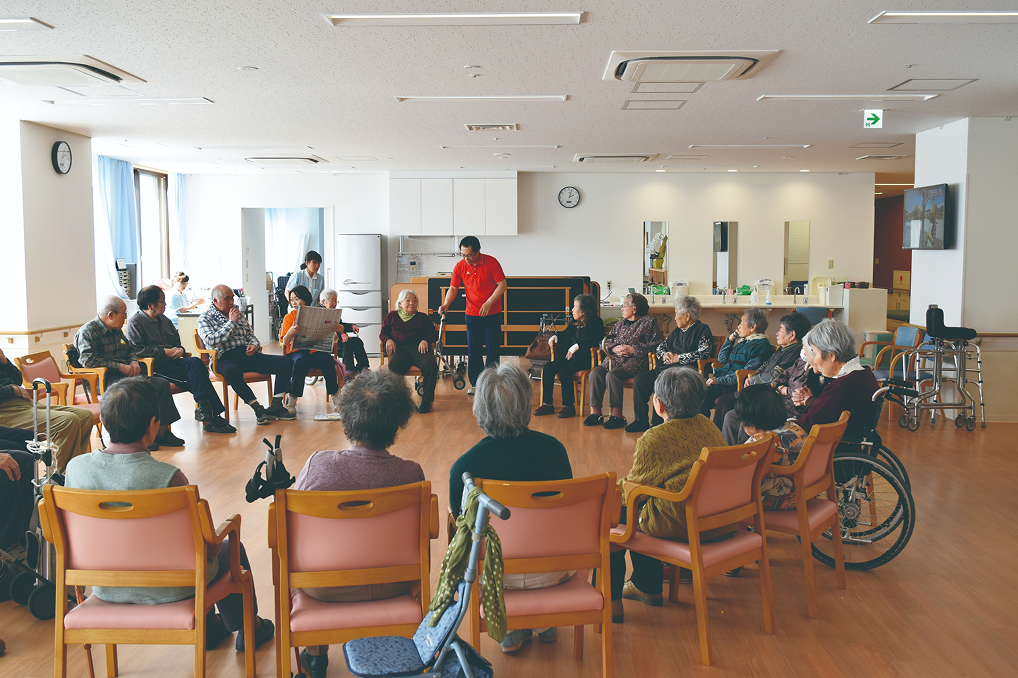 利用者様が住みなれた「自宅」・「地域」でいつまでも安心して生活が送れるように、生活機能の維持向上を目的とし、個別に必要なリハビリを提供します。入浴や食事、レクリエーションなどの日常生活動作を通して、生きがいや楽しみを見つけるきっかけとなり、「楽しかった、また来たい。」と思っていただけるように努めています。