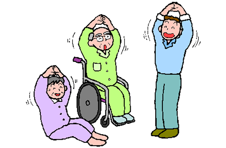 バイタルチェックの後集団にて軽めの体操をおこないます。