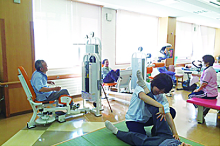 病院併設という環境を生かして利用者様の体調管理をはかりながら、在宅生活をより快適に過ごせるように、個別リハビリプログラム・入浴介助(練習)・集団体操・マシントレーニング・レクリエーション等を提供したり、身体機能や動作能力に応じて生活環境・介護サービス内容を介護支援相談員や本人様・ご家族様に提案できるよう心がけています。お知り合いや同じ地域の利用者さま同士で、楽しくコミュニケーションをはかりながらリハビリが行える場を提供できるよう心がけています。