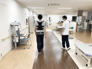- 地域企業が開発した体幹2点歩行動揺計を導入し、地域公開講座や健康運動教室にて歩行のアドバイスを実施しています。また、人工関節置換術の患者様のリハビリにも活用しています。
